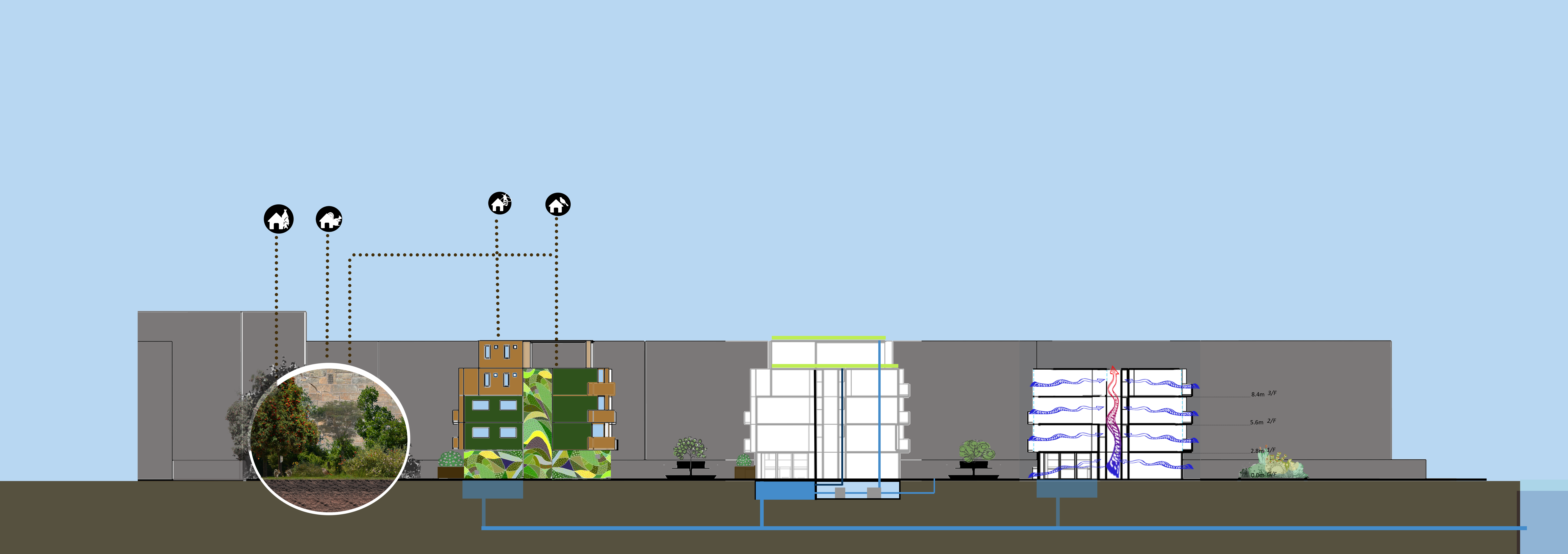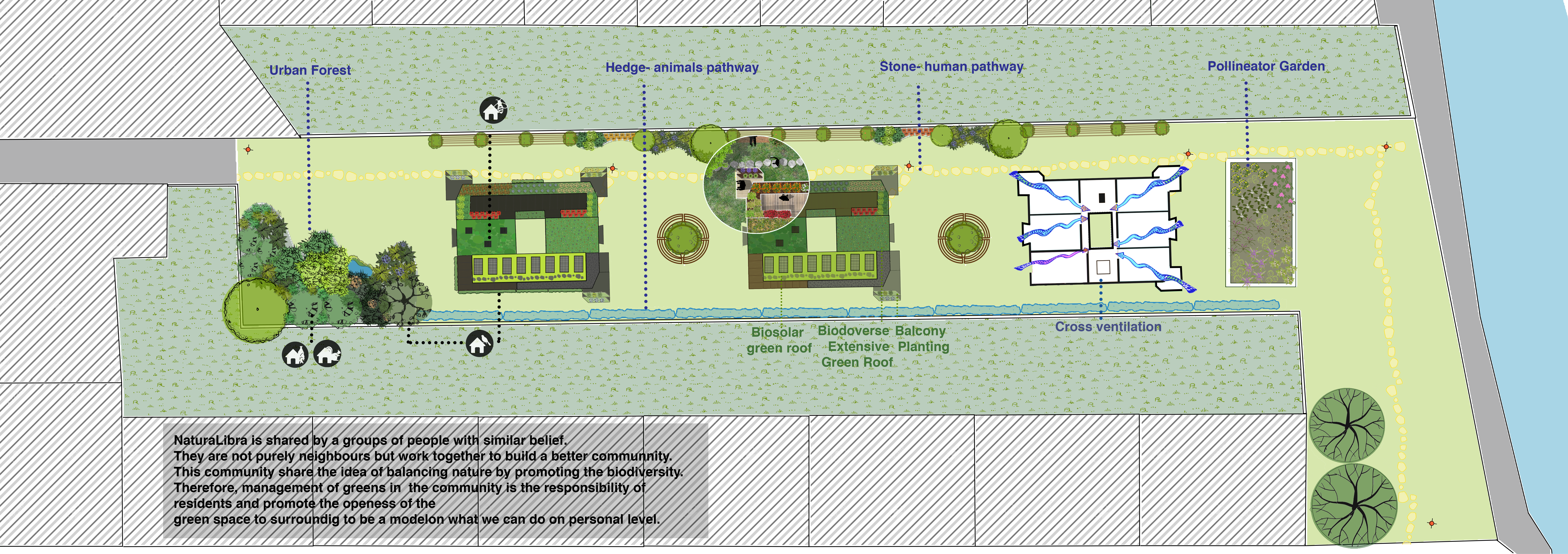First section is the overview of the project by looking into the site plan and section to understand what strategies are designed and used to create a bio diverse living space