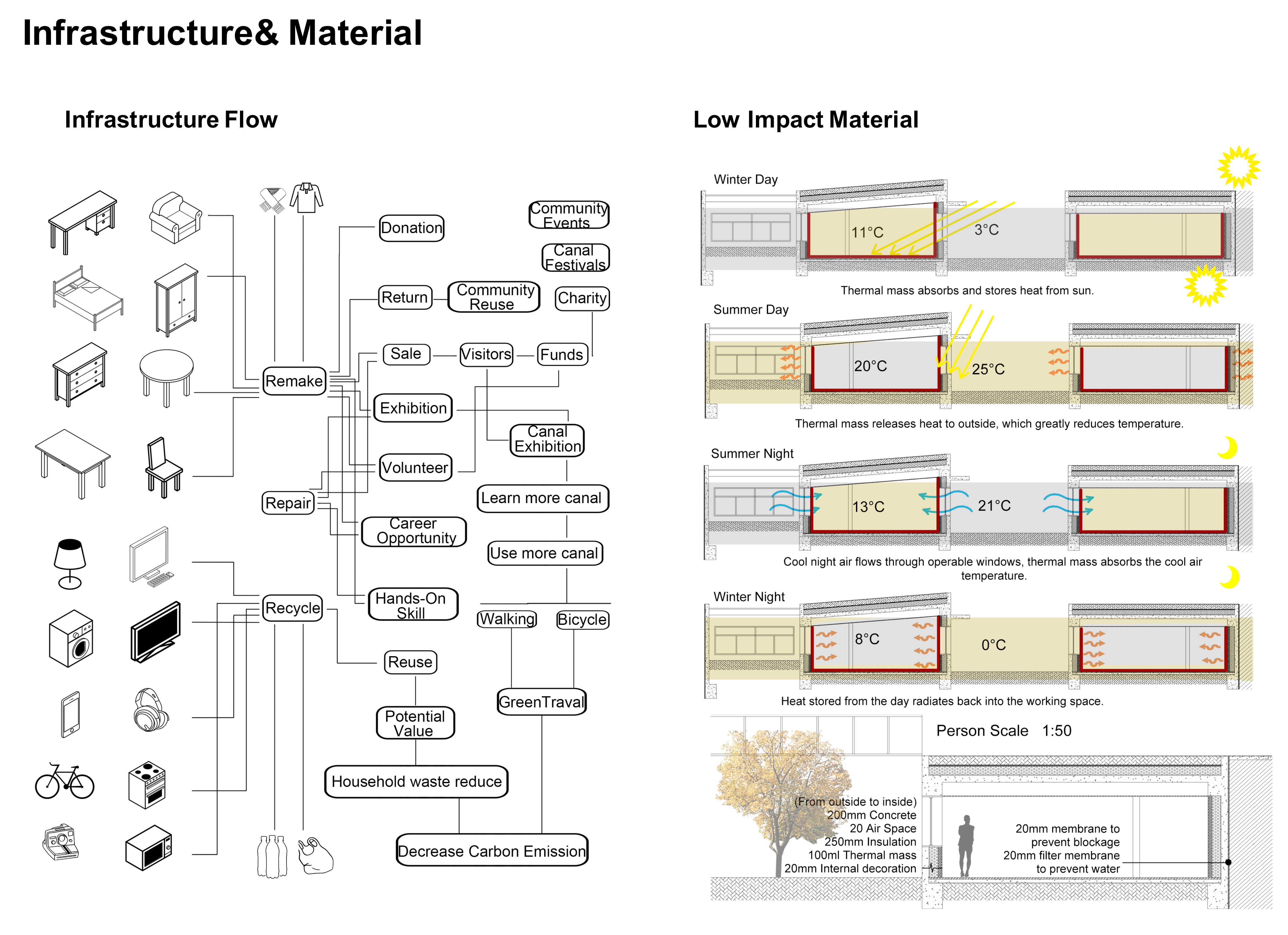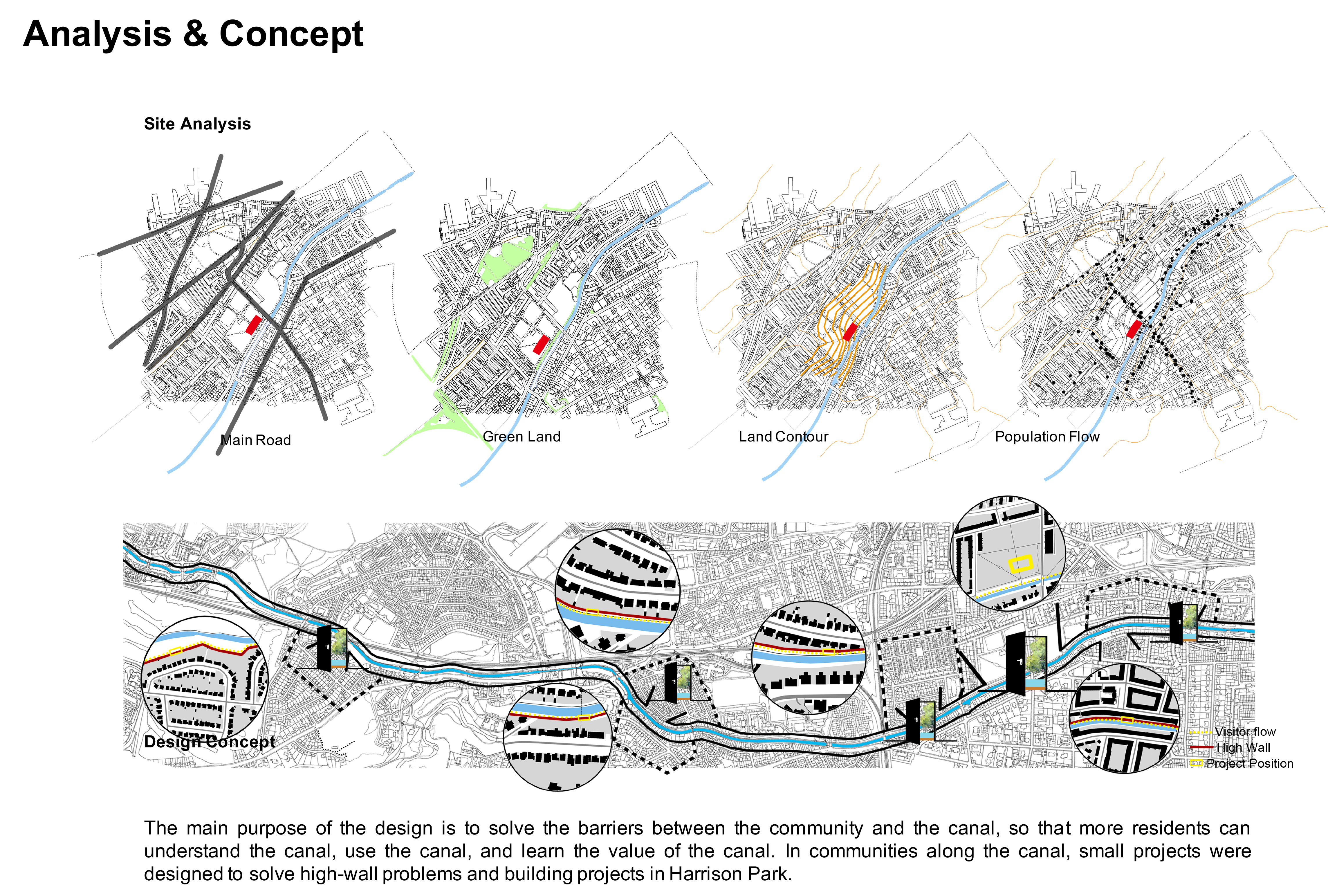 From the perspective of community, this project would appeal to residents to use green commuting, walk along the canal and get a more close relationship with each other. People can talk about their ideas about canal here and host canal project discussion. For education, it would be a learning base for school, using as outdoor training camp and helping students develop the knowledge about ecosystem. For tourism, it would introduce and exhibit canal for more visitors, making more people know its eco-value and historic significance.