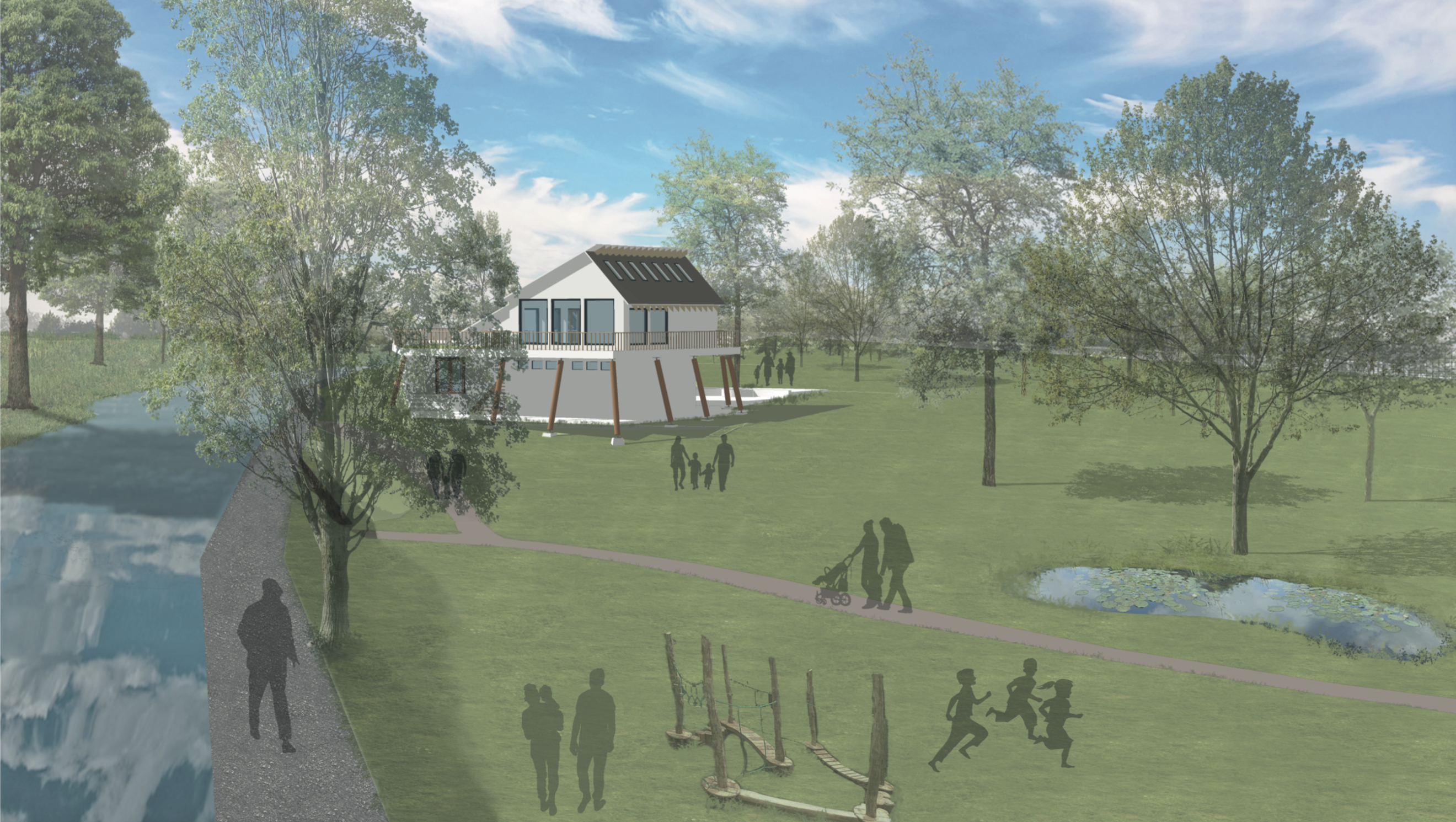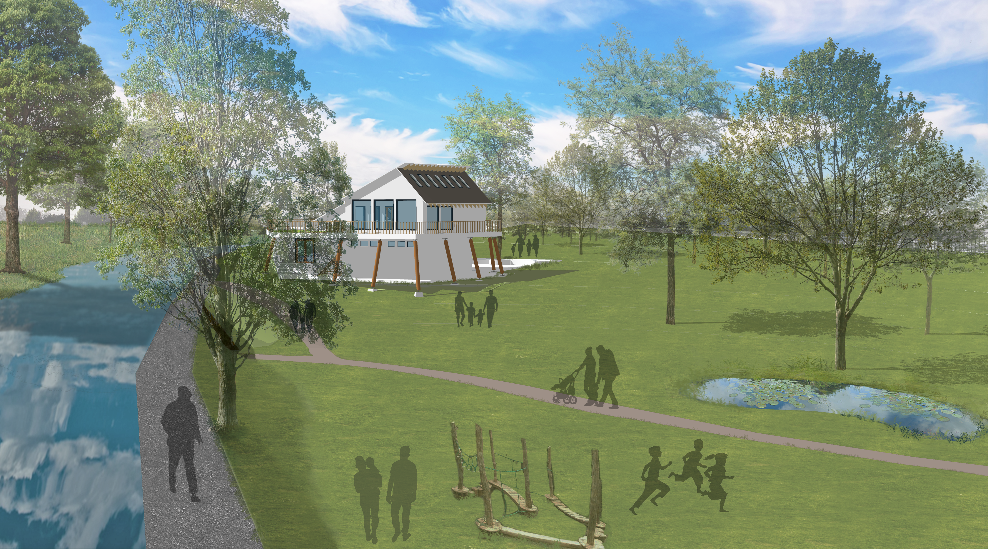 The Learning Centre and Cafe sit at the heart of the project. Two separate buildings that operate independently, but which together, tie the two sides of the project together.