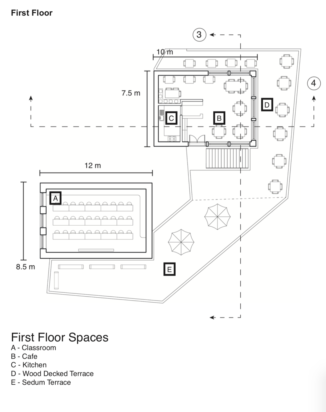 and Classroom strategically placed glazing to maximise functionality. In the cafe, large windows facing